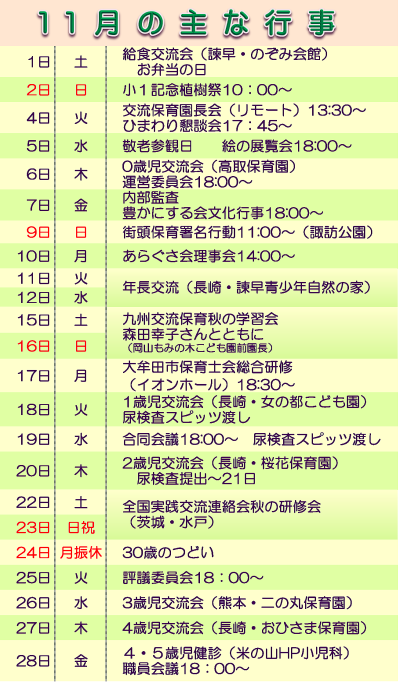 になっていきます。11月も、午前中の活動が充実できるように、8:30までの
