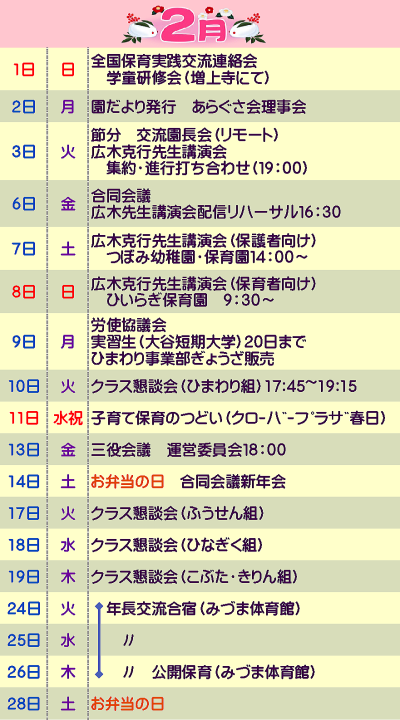 2月は、春を呼ぶ節分から始まります。いろんな鬼を退治して、元気に春を迎