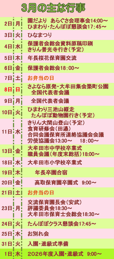 年度の締めくくりの一カ月を、次への憧れをもって過ごしていきましょう。年長の